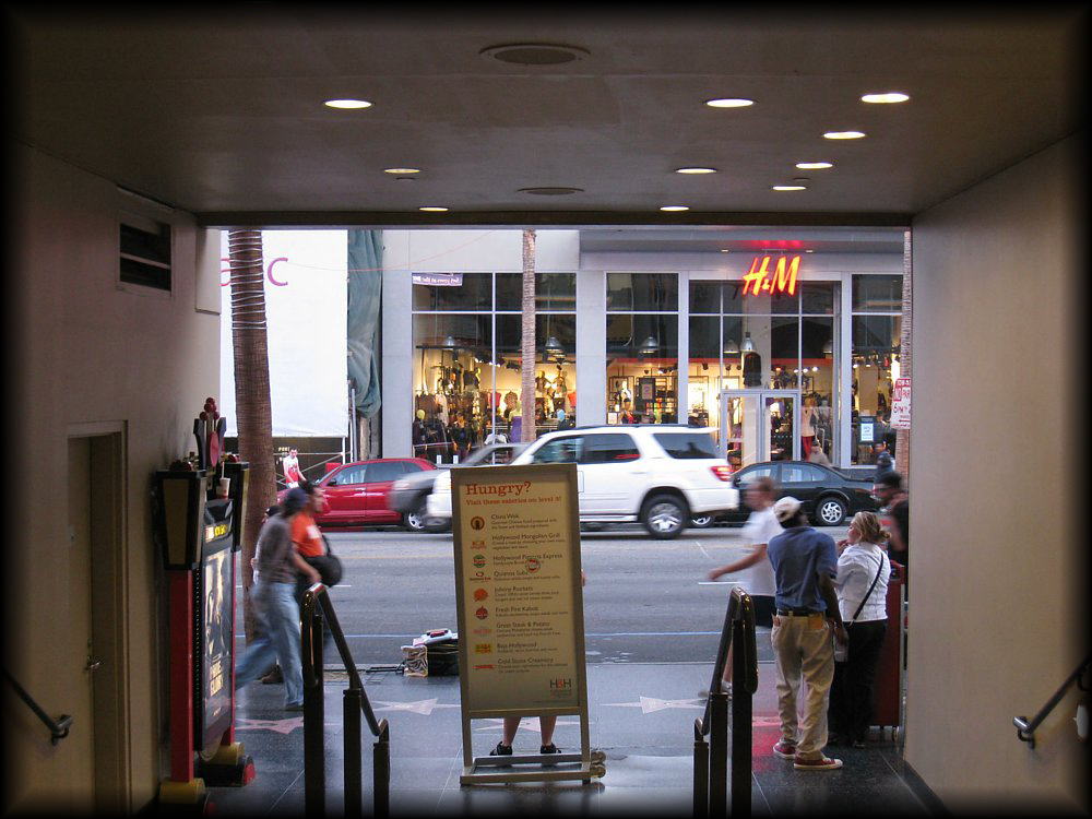 ハリウッドの街並み。正面はH&M。