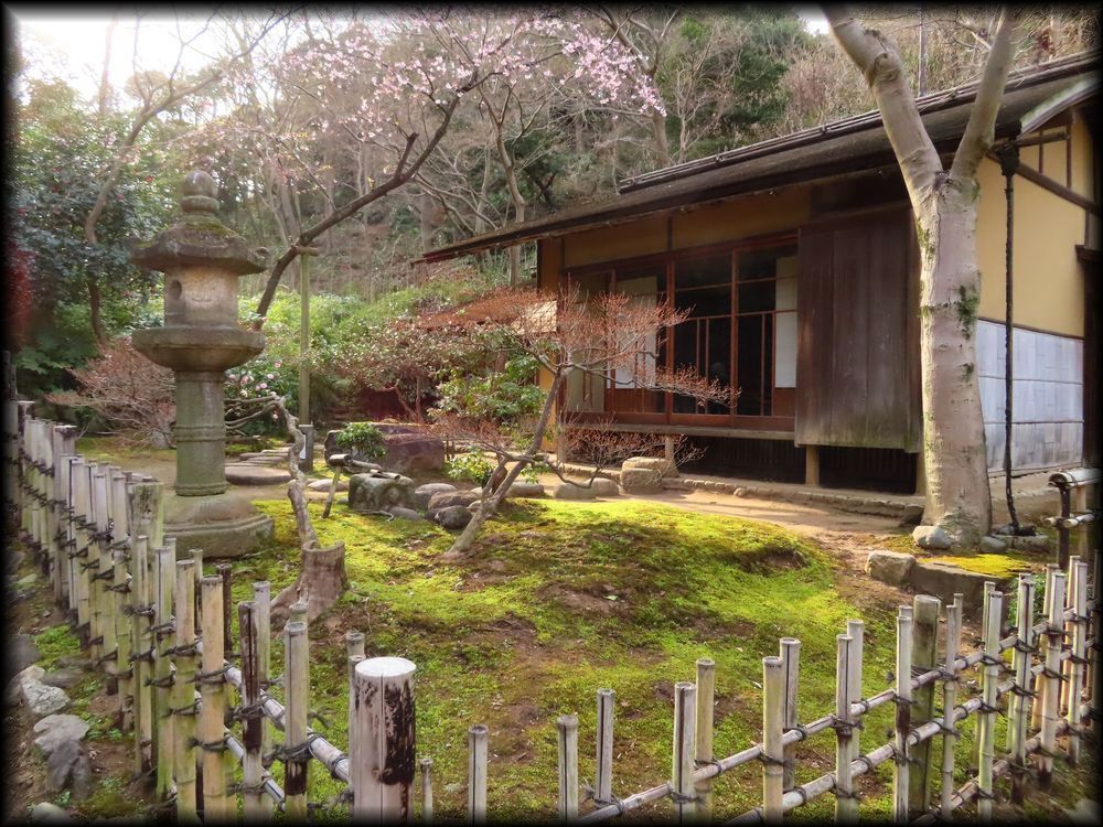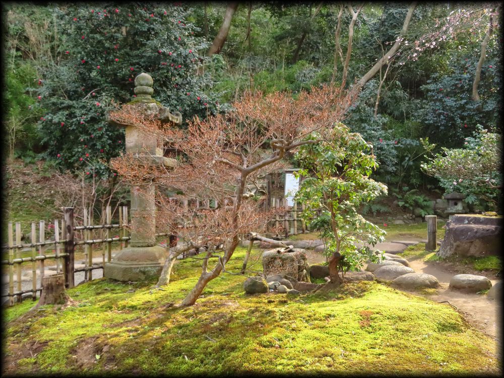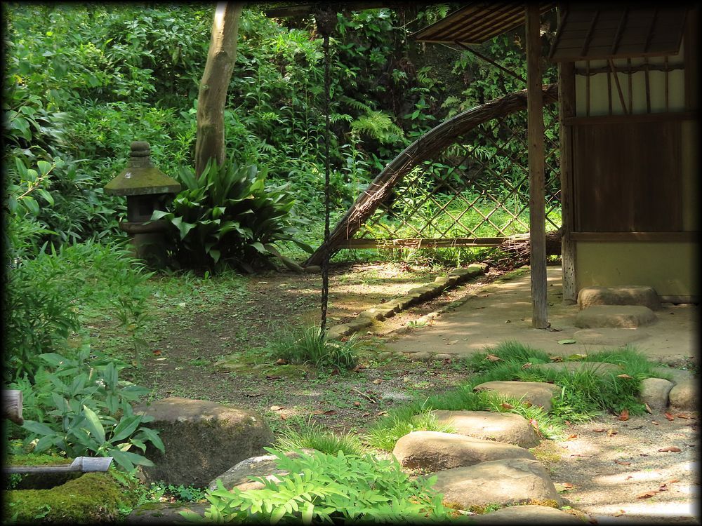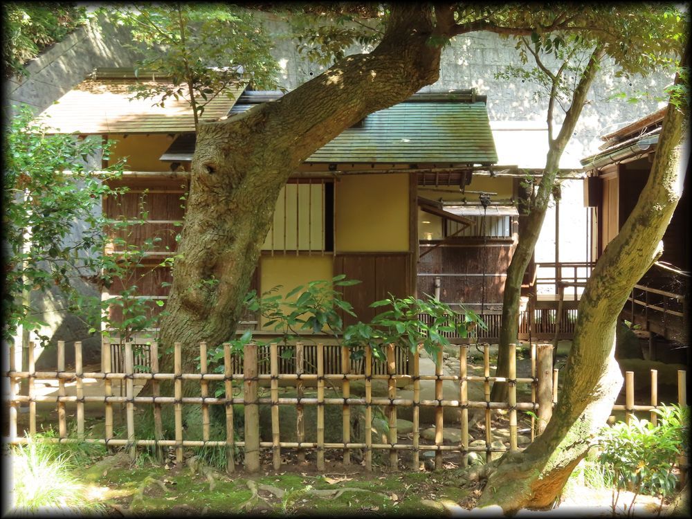 ![]() 聴秋閣の近くに建つ春草廬は、江戸時代初期に織田有楽斎が作ったとされる三畳台目の茶室で、 大正11年に京都・宇治の三室戸寺から移築されました。 ![]() ![]() この区画だけは苔も美しく手入れされ、重要文化財の茶室に相応しい露地となっています。 ![]() 中央に置かれた東大寺の礎石を周るように配された飛石。 ところでこの春草廬、重要文化財の指定対象は、右側の大きな建物(原三溪が移築時に付け加えた広間と水屋)ではなく、向かって左の小さな建物。 ![]() ![]() この部分が、織田有楽斎が造ったと言われる茶室「九窓亭(くそうてい)」で、文字通り九つの窓が設けられています。 狭い茶室という空間に多くの窓から射し込む光景は幻想的でしょうね。。 ![]() さりげなく設置された蹲踞(つくばい)にも歴史と品格を感じます。元は天龍寺に置かれていたもので、夢想疎石が使用していたとの言い伝えも ![]() ただ春先に訪れたときと異なり、真夏(の春草廬は雑草に覆われて、露地の雰囲気が大いに損なわれている印象も。 他の場所に関しても、蜘蛛の巣で覆われていたり、雑草が生い茂っていたり、という場所が多かった気もします。 ![]() 聴秋閣も真夏の直射日光を避けるためか、雨戸が閉めされていてがっかりした記憶も。 文化財の保護が最重要課題ですが、事前の通告はほしいかな。真夏の三渓園はお勧めできません。 ![]() ![]() 天授院と月華殿間に建つ金毛窟。 一畳台目の狭い茶室で、大徳寺の三門「金毛閣」の古材を利用して作られたことに因み、金毛窟と命名されたそうです。 ![]() ![]() 原三渓が自らの構想に基づいて設置した茶室「蓮華院」。大正6年の建立です。 ![]() ![]() 1970年に寄贈された外苑の茶室。八畳の広間と四畳半の小間で構成されています。 |