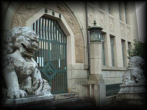 岡崎には市立美術館や国立近代美術館、府立図書館などの公共施設が集中。 平安神宮や動物園もあることから、休日ともなれば市民や観光客でたいへんな賑わいを見せます。 近代建築では武田五一の作品がこの界隈だけで2件も(府立図書館は外観保存ですが)。 特に藤井有鄰館の外観は東洋趣味に溢れていて見応えがあります。 |