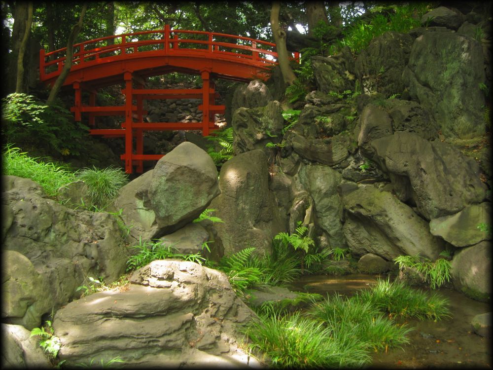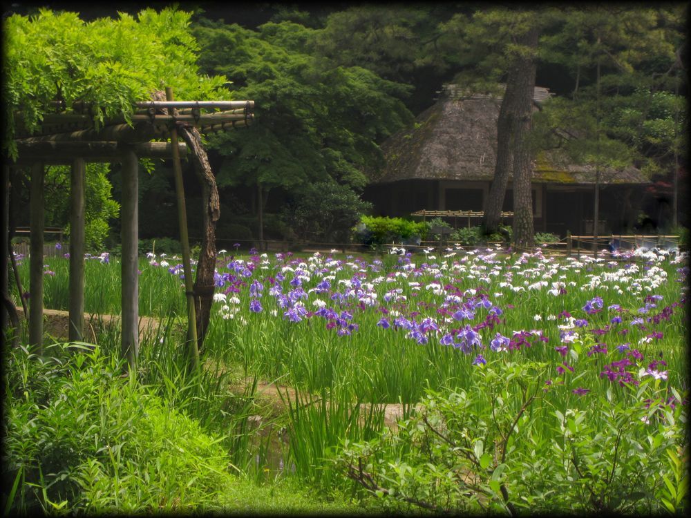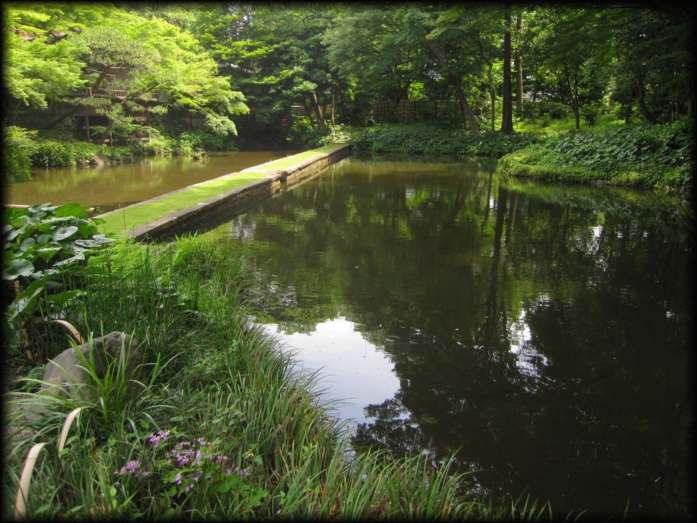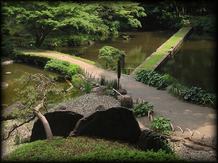 小石川後楽園 菖蒲田、円月橋、通天橋など (東京都文京区) 東京の庭園 東京の大名庭園 トップページ MAP ![]() 西門周辺の小廬山、大堰川、通天橋。さらに庭園北部の円月橋などを歩いてみました。 メインの部分である大泉水と内庭部分はこちらのページを参照して下さい。 大泉水後楽園は六義園と同様、各地の名所を風景に採り入れた「名所写し」の庭となっていますが、 中国の明から亡命し、水戸家に仕えた儒学者・朱舜水の影響を受け、中国の名所や庭園様式も組み込まれています。 六義園を女性的な「和歌の庭」とするなら、こちらは中国趣味に溢れた男性的な庭。 名称を中国宋代に著された「岳陽楼記」から採用し、庭園の随所に中国の名所の名前を冠した景観を配しています。 ![]() ![]() 以前の唯一の入り口だった西門(現在も開放されています)から入って最初に目に入る小廬山。 一面が笹に覆われています。中国の景勝地・廬山に似ていることから、 江戸の儒学者・林羅山が名づけたとされていますが、富士山の写しとも言われています。優美な造形ですね。 ![]() 屏風岩から望む渡月橋(モデルは京都の嵐山)と西湖堤(中国の杭州)。京都と中国の名勝を組み合わせた風景です。 ![]() ![]() 西湖堤は旧芝離宮庭園など他の大名庭園でも設置されていますが、後楽園が最初に西湖堤を造ったとされています。 ![]() ![]() 通天橋(京都の東福寺)と通天橋から観た大堰川と渡月橋(ともに京都の嵐山)。深山幽谷の趣で、ここからの風景も気持ちいい。 ![]() 11月中旬に訪れたときの通天橋周辺。紅葉で有名な東福寺を模倣しただけあり、見事な紅葉でした。 ![]() 大堰川に配された石の数々。現代の感覚に通じるオブジェのような配置です。 ![]() ![]() 後楽園は6月頃、花菖蒲が咲き誇ります。鎌倉の明月院よりも広い範囲に菖蒲が植えられ、 都心とは思えない農村的な風景が拡がっていました。 ![]() ![]() 訪れた日は満開とまでは行かなかったのですが、それでも都心でこれだけの花菖蒲を楽しめる場所は貴重 ![]() ![]() 旧江戸城二の丸庭園とともに、花菖蒲の観賞では東京の都心でお勧めの場所です。 ![]() 菖蒲田の向こうに見える石橋は「円月橋」 ![]() 円月橋は徳川光圀が招聘した明の高名な儒学者、朱舜水が設計したと言われています。 ![]() ![]() それほど大きな建造物ではないのですが、堂々とした石造りの存在感。 水面に映ると橋のアーチがちょうど満月のように見えることから円月橋と名付けられました。 後楽園が造られたときから今に伝えられている貴重な石造物です。 ![]() ![]() ![]() 水戸藩六代藩主時代に造られた建物ですが、第2次世界大戦で焼失。1959年(昭和34年)に再建されました。 素朴なたたずまいと紅葉、石灯籠が設置された露地のような趣が印象的 ![]() ![]() ![]() 紅葉覆われた西門近くの「涵徳亭(かんとくてい)」。喫茶と飲食ができる施設になっています。。 ![]() ![]() 大泉水から内庭に向かう道に造られた延段(のべだん)。 自然石を敷き詰めた「草の敷石」で、鋭角的な石が埋め込まれているのも特徴です。 ![]() 農村的風景を象徴する菖蒲田横の八つ橋 ![]() ![]() ![]() 2012年6月に訪れた時の蓬莱島。ちょうど護岸工事が行われていたのですが、 いまの蓬莱島と比べると石組みなどが少し壊れかかっていた感じですね。 あらためて護岸工事などの改修が庭園の維持に欠かせないことを再認識しました。 →現在の大泉水と蓬莱島 Copyright © Goto.N. All Rights Reserved |