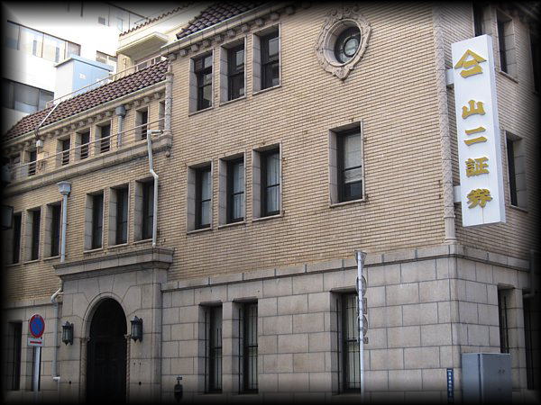 設計:西村好時 竣工:昭和10年 都営地下鉄日本橋駅5分 日本橋兜町4 見事に違う雰囲気。旧き佳き兜町の雰囲気そのまま。 白い石の壁と黒い窓枠、心に残ります。