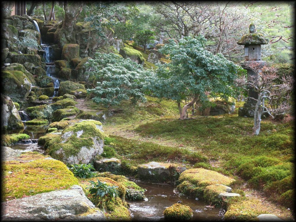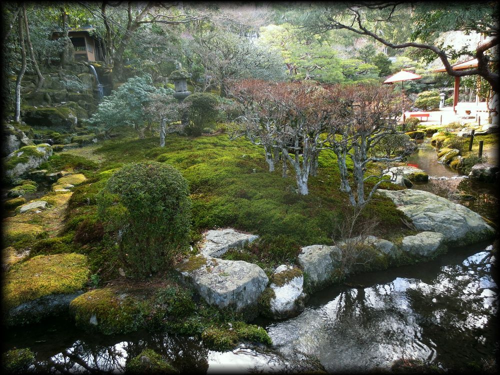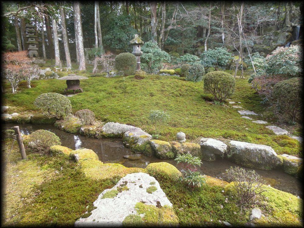 ![]() ![]() もと比叡山・延暦寺の里坊のひとつで、現在は大津市が管理しています。場所は日吉大社や西教寺にも近い、坂本の歴史が色濃く残る一角 ![]() ![]() ![]() 3,300平方メートルの面積を持つ広大な回遊式池泉庭園で、元は延暦寺の里坊でした。詳細は公式ホームページで。 ![]() ![]() 築山からは滝を通じて水が流れ、庭一面に広がる苔。この金属製の灯籠は江戸時代につくられたそうです。 ![]() ![]() ![]() 主屋の二階から眺める庭園。立体的な造りがよくわかります。 ![]() ![]() ![]() ![]() 築山の上には茶室 ![]() 茶室の近くから眺める主屋 ![]() ![]() 主屋の前にはお茶を頂ける緋毛氈(ひもうせん)の野点(のだて)席が置かれています。 |