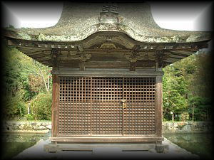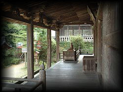 木造檜皮葺の本堂は鎌倉時代前期(1274年)に建立されました。それほど大きな建造物ではないのですが、 実際の大きさ以上の迫力があります。木目の古さがいかにも「国宝!」という感じですね〜。 |