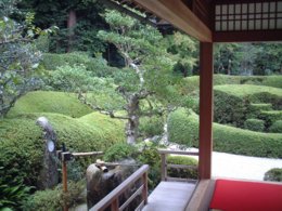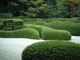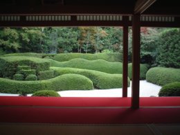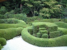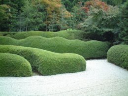 白砂は海、刈り込みは宝船、七福神などを表しているそうですが、何を思うかは各人の自由。