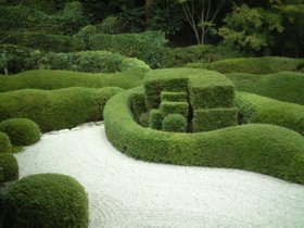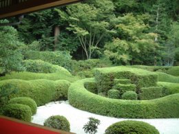 全国的にも珍しい、見事に手入れされた刈り込みと白砂の枯山水を観るだけでも、