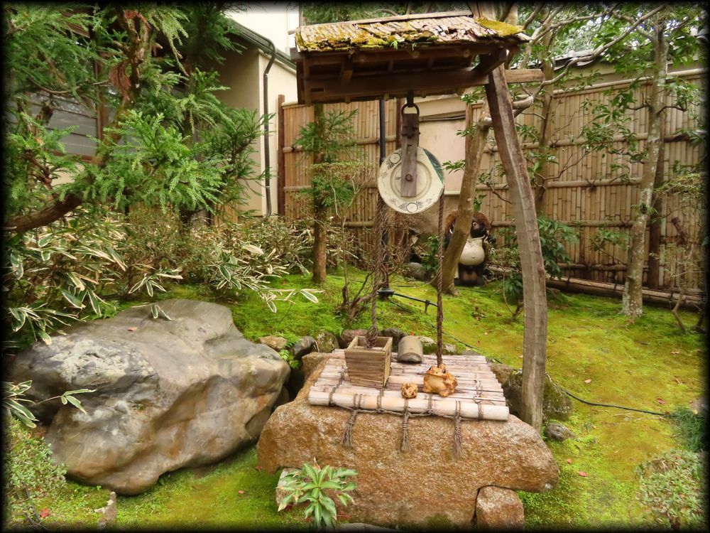 井戸も歴史を感じさせる造り。織部焼の釣瓶が目を惹きます。