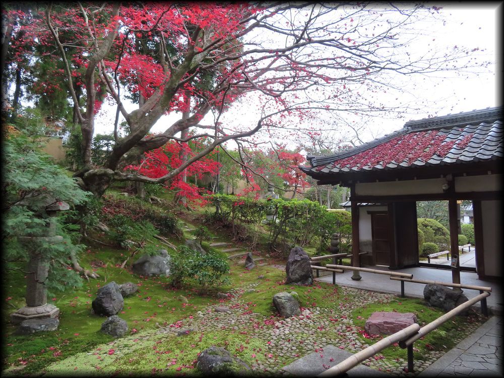 紅葉の季節にひっそりと公開される金戒光明寺の塔頭。真っ赤な楓とふわふわの苔が美しい穴場的なお寺です。