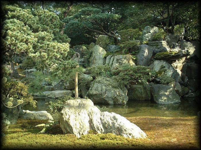 京都御所 庭園 庭は小御所前の御池庭と御常御殿前の御内庭。 御池庭は雄大で優美な雰囲気、 御内庭は小振りながらも、意外に豪壮な趣も。 左写真は御内庭。 |