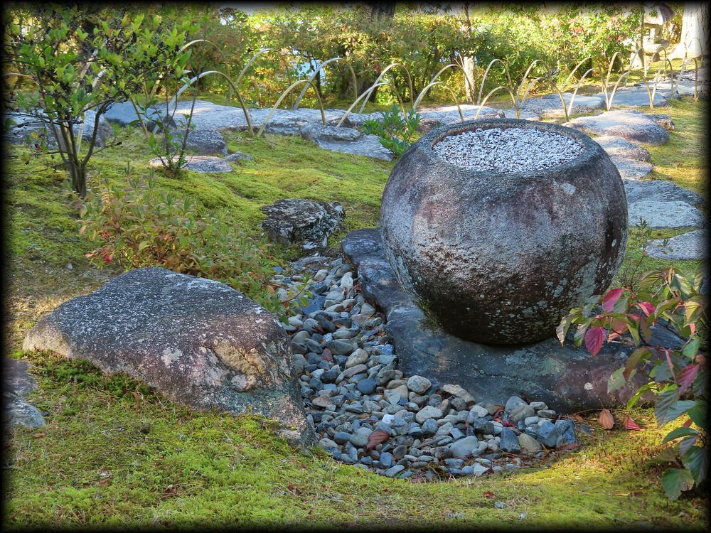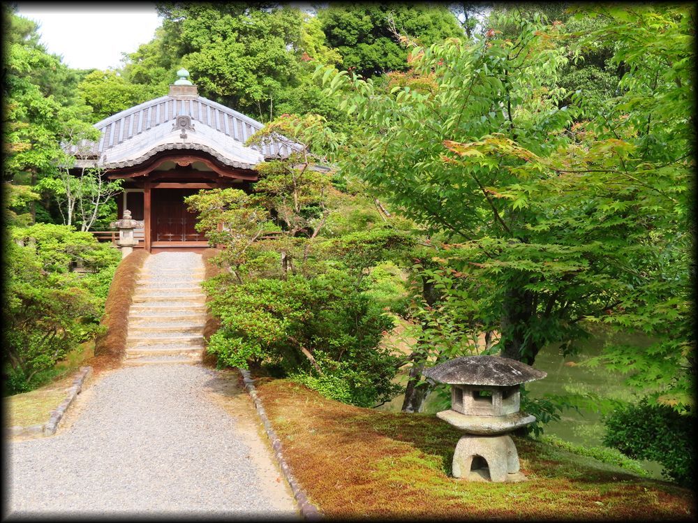 ![]() ![]() ![]() 茅葺切り妻屋根の小亭、賞花亭 ![]() 「峠の茶屋」を意識したそうで、初夏のある日に訪れたときは「龍田屋」の暖簾が掛けられていました。 賞花亭は「春の茶屋」とされていますが、「龍田屋」の暖簾は秋に掛けられるそうです。 ちなみに夏の茶屋は笑意軒、秋の茶屋は月波楼、冬の茶屋は松琴亭とされています。 ![]() 賞花亭の扁額。字体で遊んでいる感じが気持ちを和ませてくれます。 ![]() 竹の連子窓。吹き抜ける風が涼しい。亭内の光と影の雰囲気も捨て難し(けど自分の写真の腕前では上手く表せなかった・・・・) ![]() ![]() 離宮内でいちばん高い場所に位置する賞花亭からは、桂離宮で唯一「見下ろす」景観が楽しめます。 ![]() 写真中央右の頂は比叡山でしょうか。 ![]() 賞花亭前の手水鉢 ![]() ![]() 賞花亭から下れば、園林堂。持仏堂として建造されたため、離宮内では異色の建物です。 右の雪見灯籠は、「京都でいちばん美しいと言われている」(ガイドさん)そうです。 ![]() 紅葉の季節は華やかさが増します。 ![]() 園林堂の前に架かる橋の下を覗くと、幾重にも橋が重なる風景が ![]() 園林堂の横に設置された手水鉢と飛び石 |