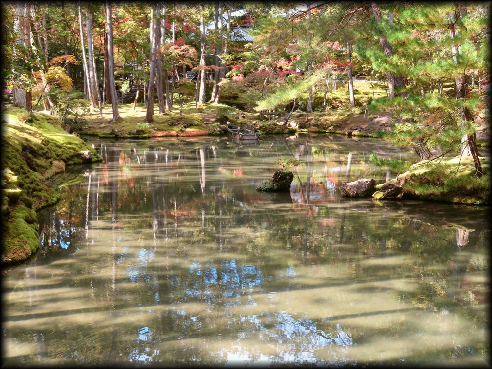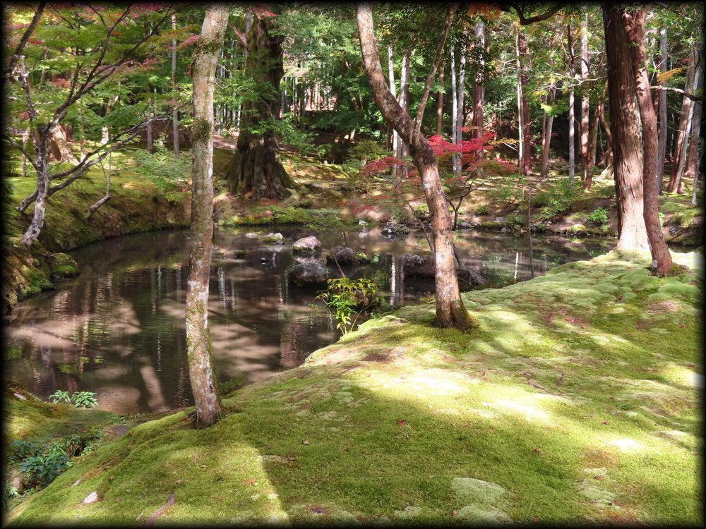 | 苔寺(西芳寺) 黄金池、金剛池の風景 京都の庭園 地図 京都の苔庭 京都の池泉庭園 |