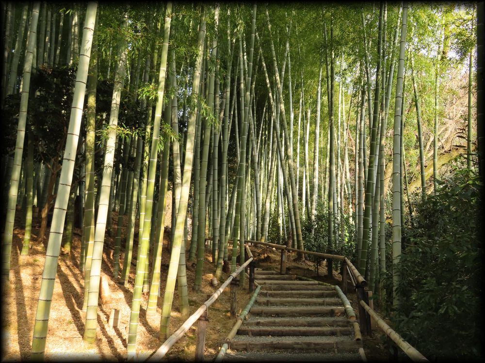 時雨亭と傘亭からの帰路は竹林の中を通って・・・・