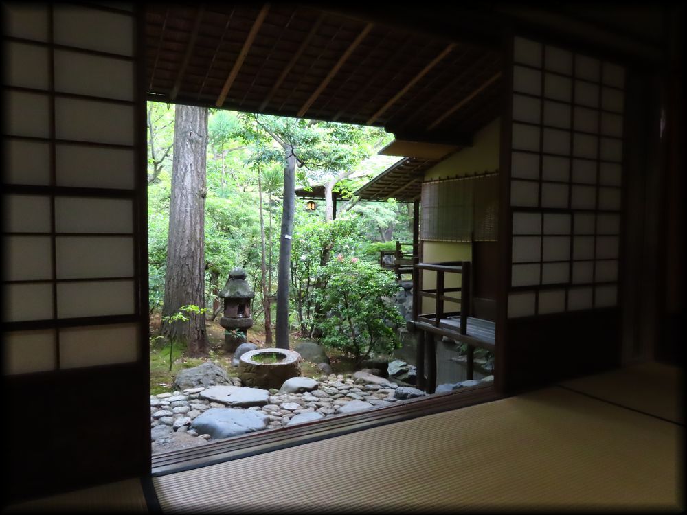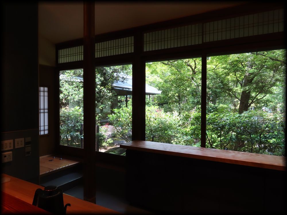 障子越しに観る露地。こちらの部屋も廂(ひさし)が長く、廣誠院の大きな、美しい特徴に