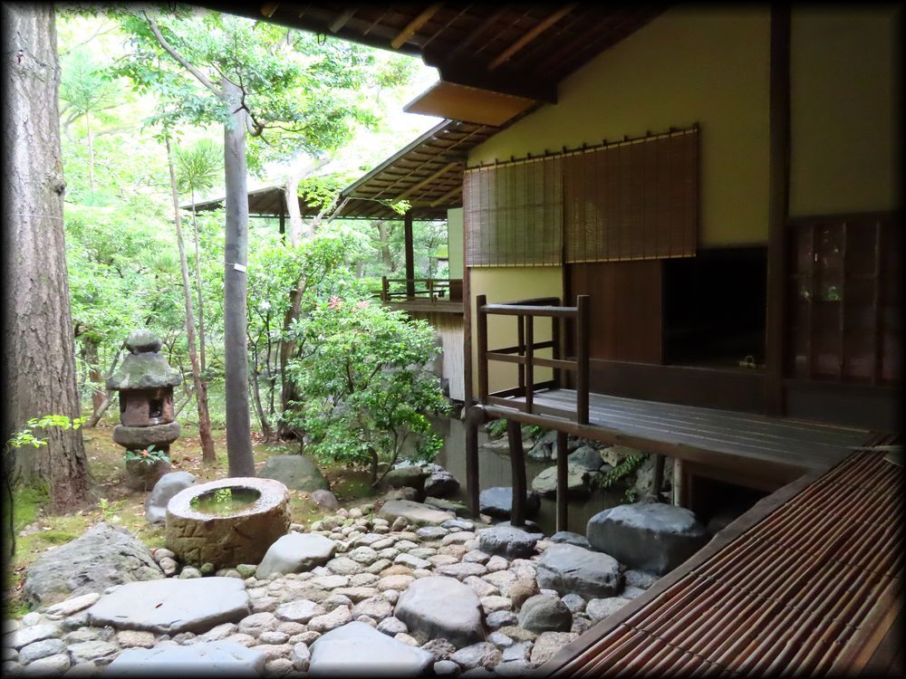 広間から眺める茶室、そして書院。それぞれの部屋が水の上に雁行型に建てられているのがわかります。伊集院の卓越した美意識に感動…。