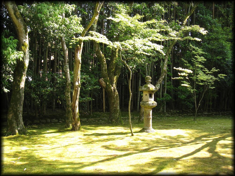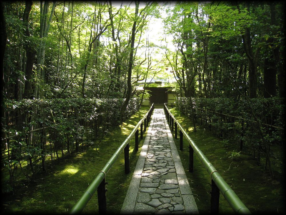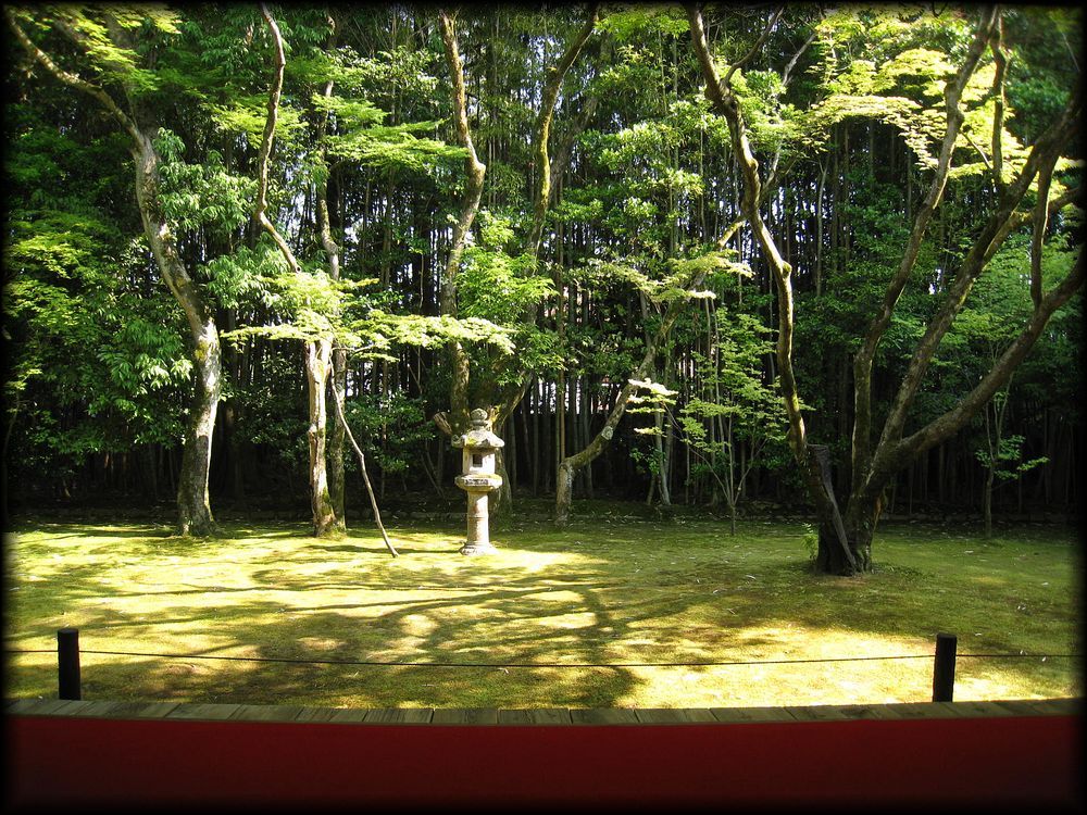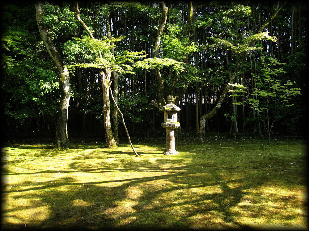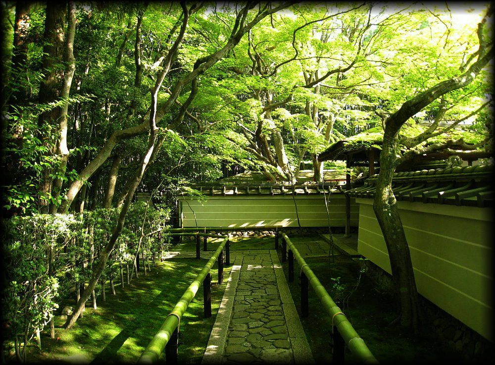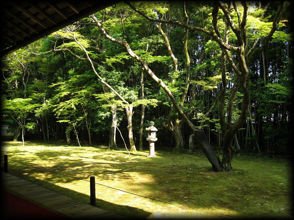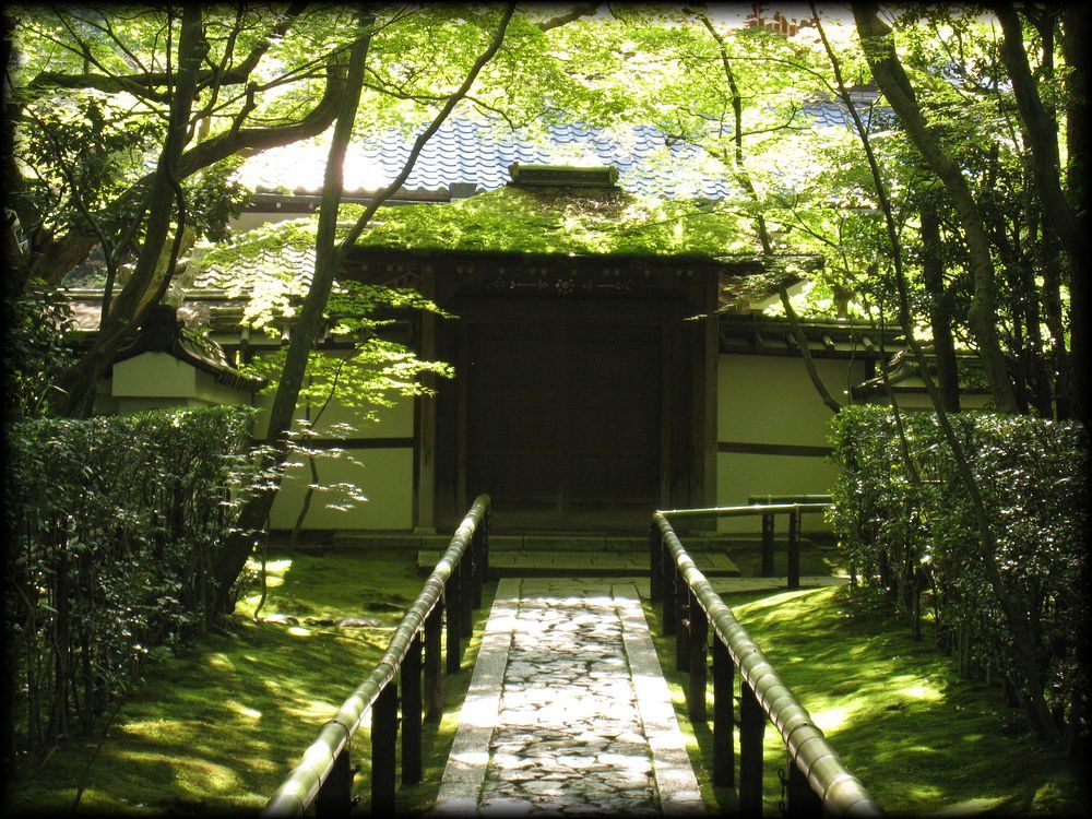 ![]() ![]() 緑一色の参道。秋には紅葉と黄葉で埋め尽くされます。 ![]() ![]() ![]() 最大の見所、本堂(客殿)南庭「楓の庭」。 たった一基の石灯籠が景観を引き締めています。絶妙の配置。光と影、緑が織り成す美しさは、大徳寺の塔頭の中でも特筆もの ![]() ![]() 一面の苔庭に石灯籠と数本の木があるだけの簡素さは、余計な説明の言葉も不要な、無駄をそぎ落とした美しさ ![]() 苔と新緑の美しさで人気の塔頭ですが、平日午後にはこの贅沢な空間を独り占めすることも。この庭を眺めながら、抹茶も頂けます。 光と影が美しい午後 ![]() ![]() ほかの塔頭とは一風趣が異なる花頭窓から玄関を望む。 |