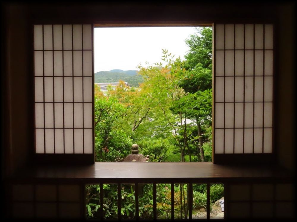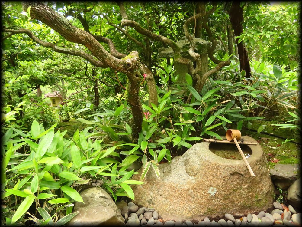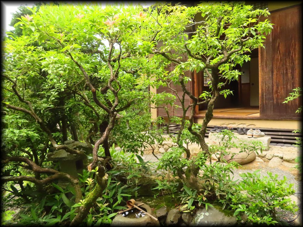 机に映った緑の鏡、立体的な庭園、役石が個性的な茶室などなど本当に素晴らしい庭園でした。