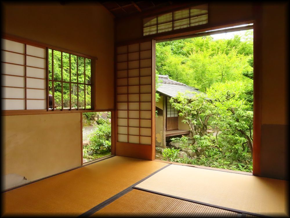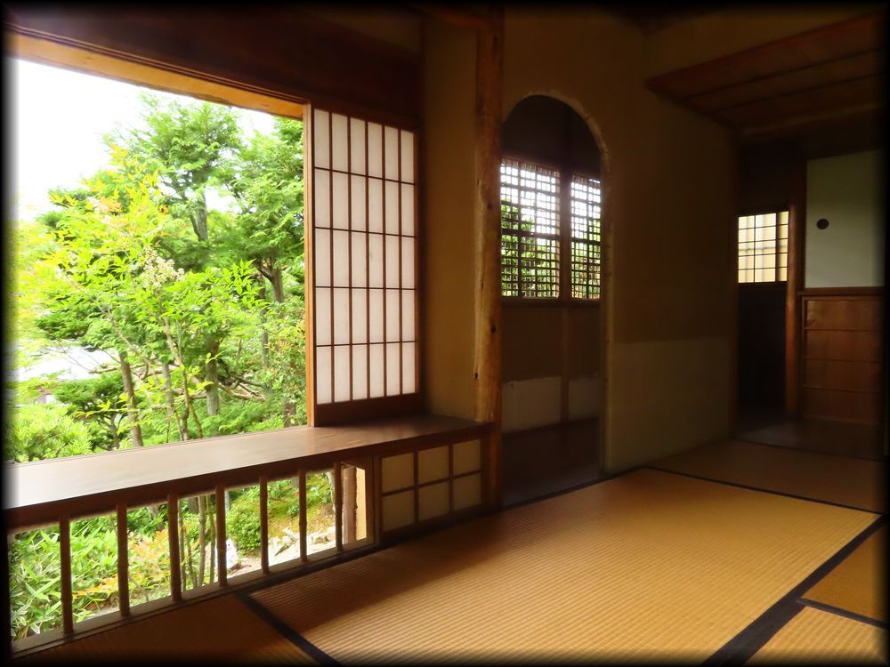 旧邸御室には、大広間の北側、室内の茶室と洋間の間にちょっとした坪庭もつくられています。