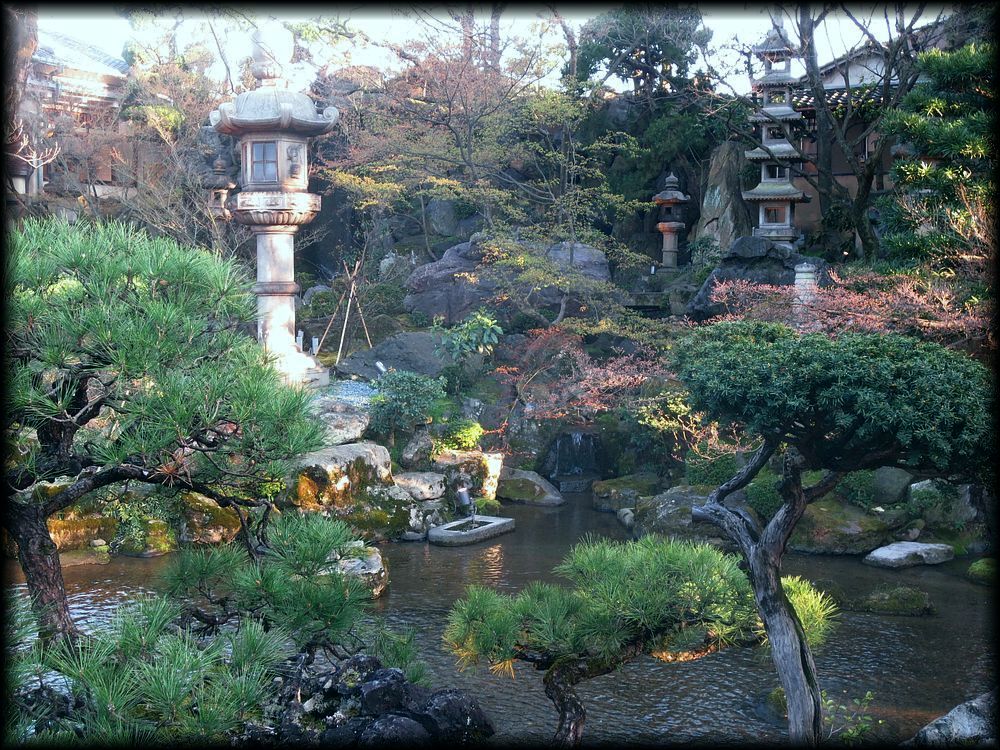 山縣有朋の「第二無鄰菴」として作られ、七代目小川治兵衛が作庭しました。高瀬川の流れと数多くの石燈籠が美しい京都有数の名園