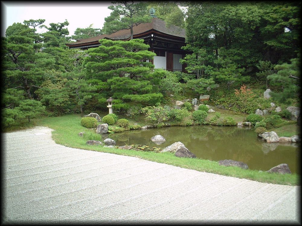宸殿の北東に建つ雲明殿の前に広がる庭。石灯籠が大きな存在感を示しています。