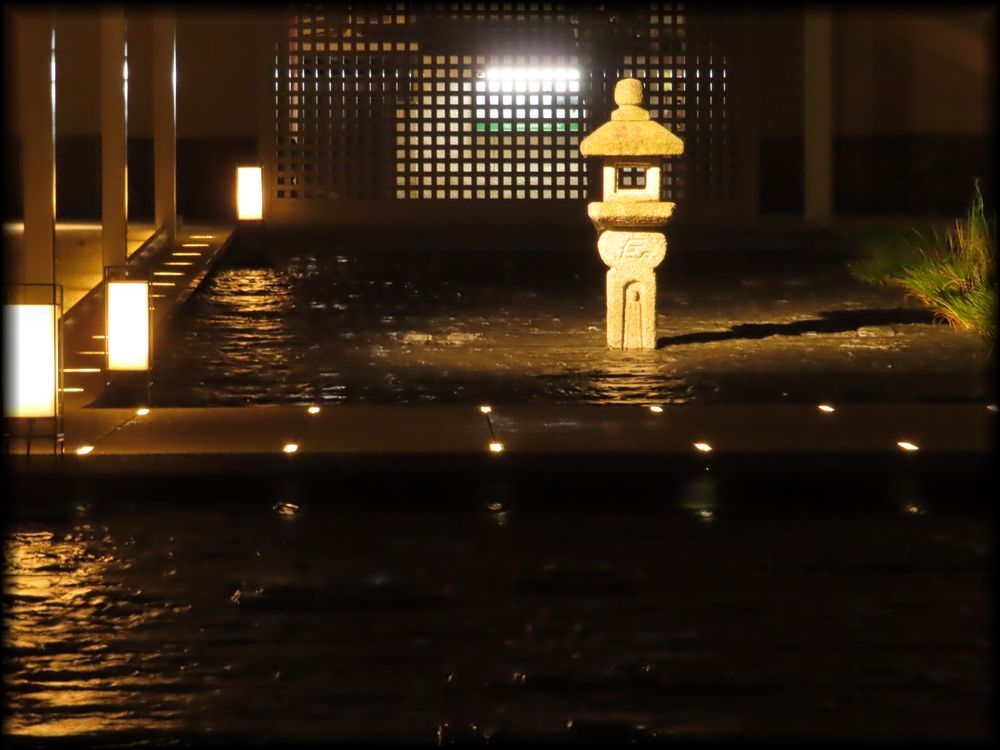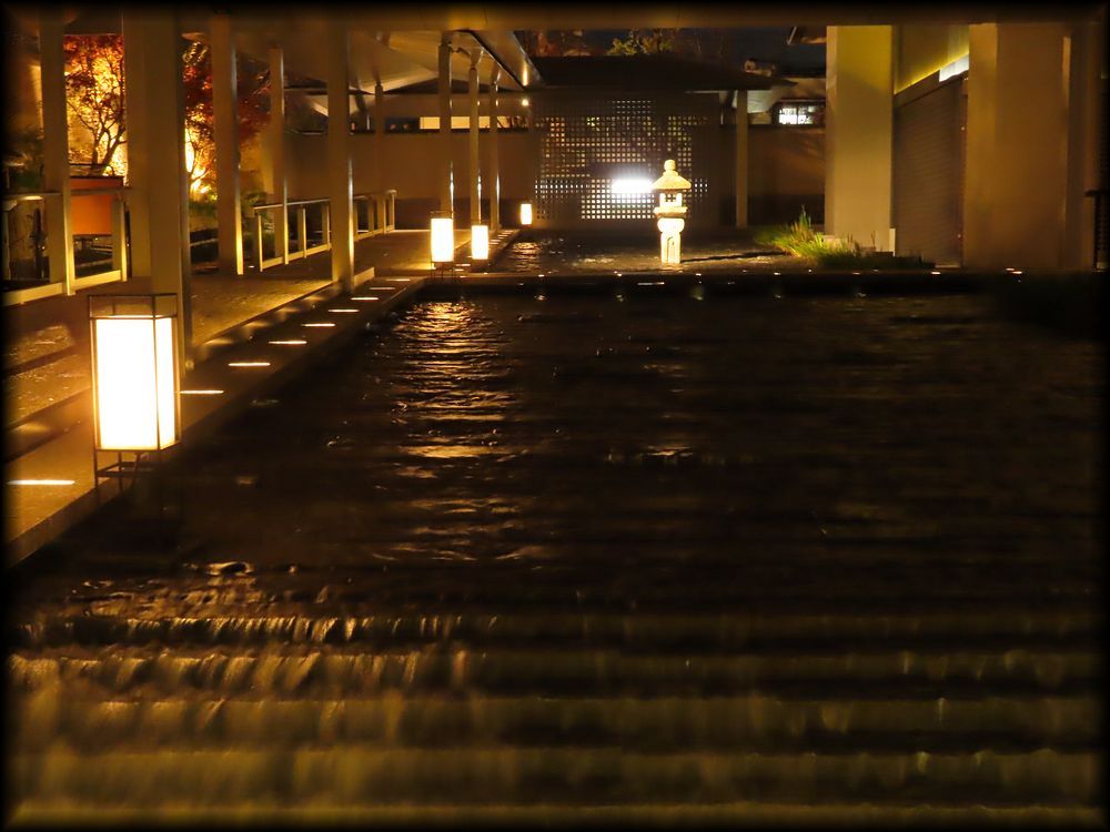 水流に石灯籠が浮かび上がる夜の照明もまた幻想的で美しく