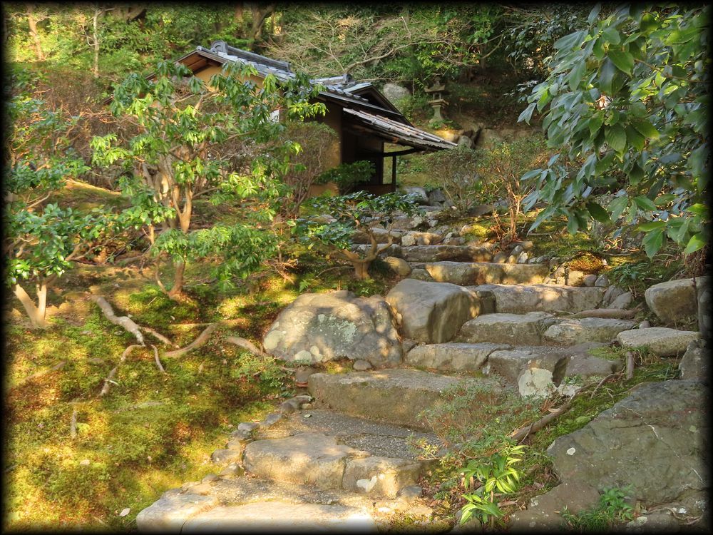 写真をあらためてよく見ると、要所の至るところに石灯籠が抜かりなく(?)配置されていて、風景を引き締めています。