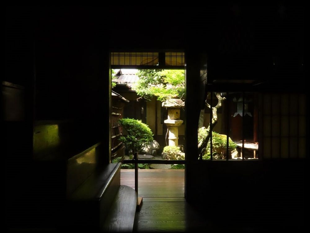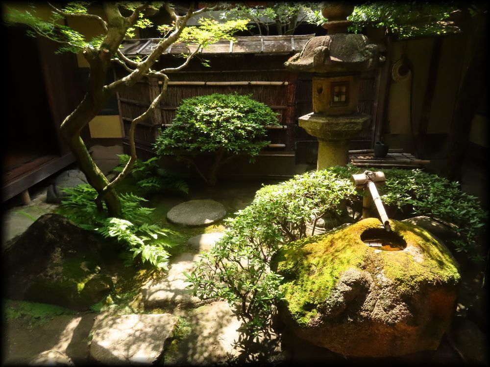 光と影の対照が本当に美しくて、幻想的です。坪庭も、どこよりも垢抜けた造形に