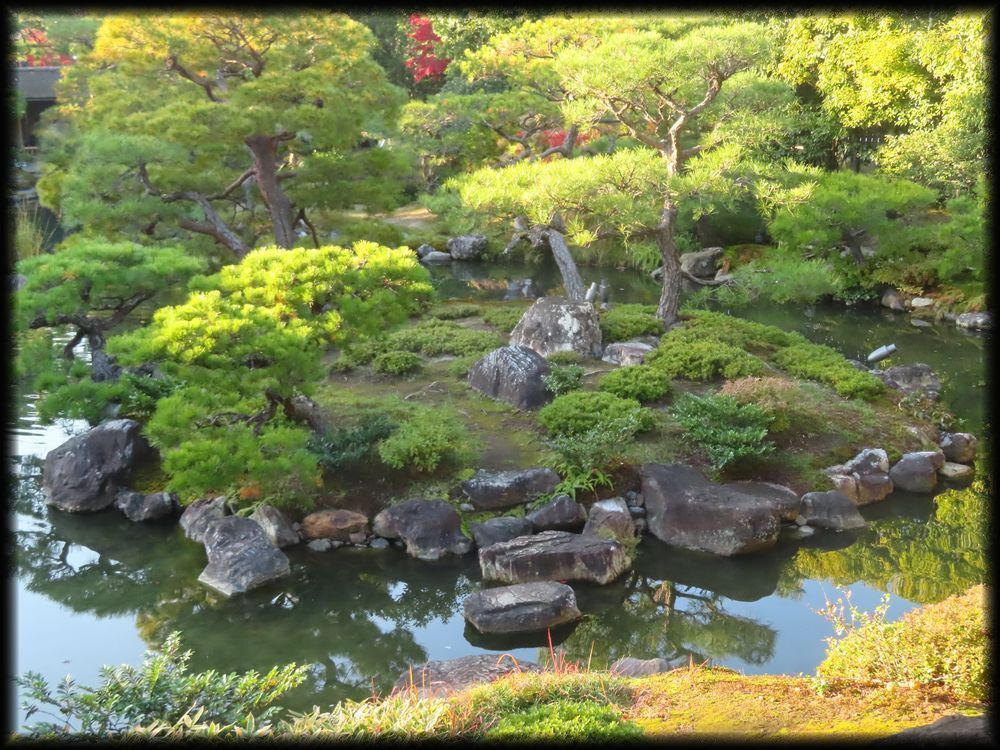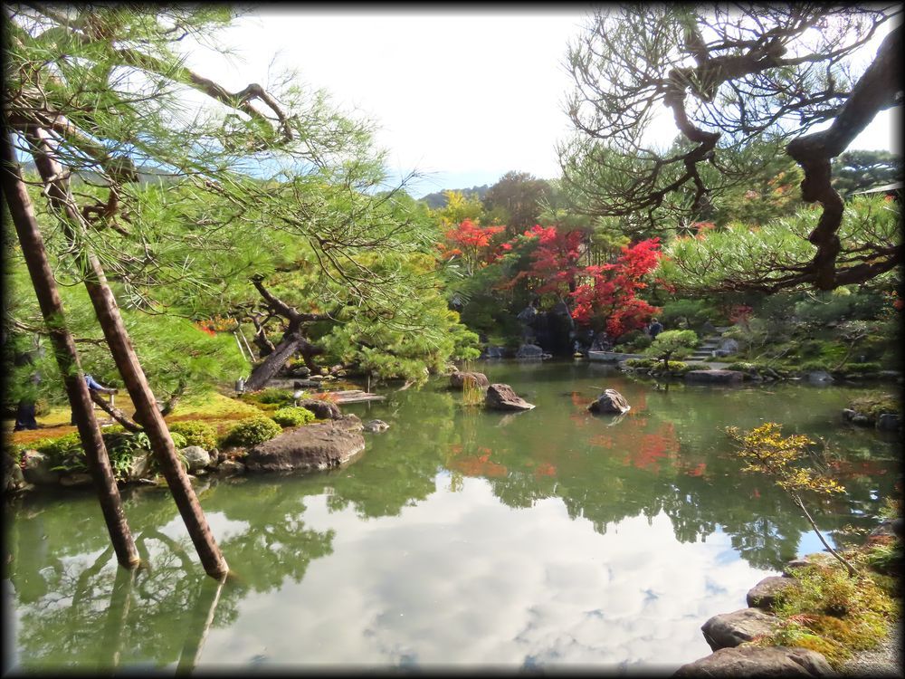 聚遠亭の露地から観る大池周辺の景色。對龍山荘はどの場所からどこを観ても完璧な美しさですね。