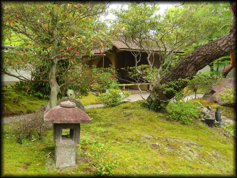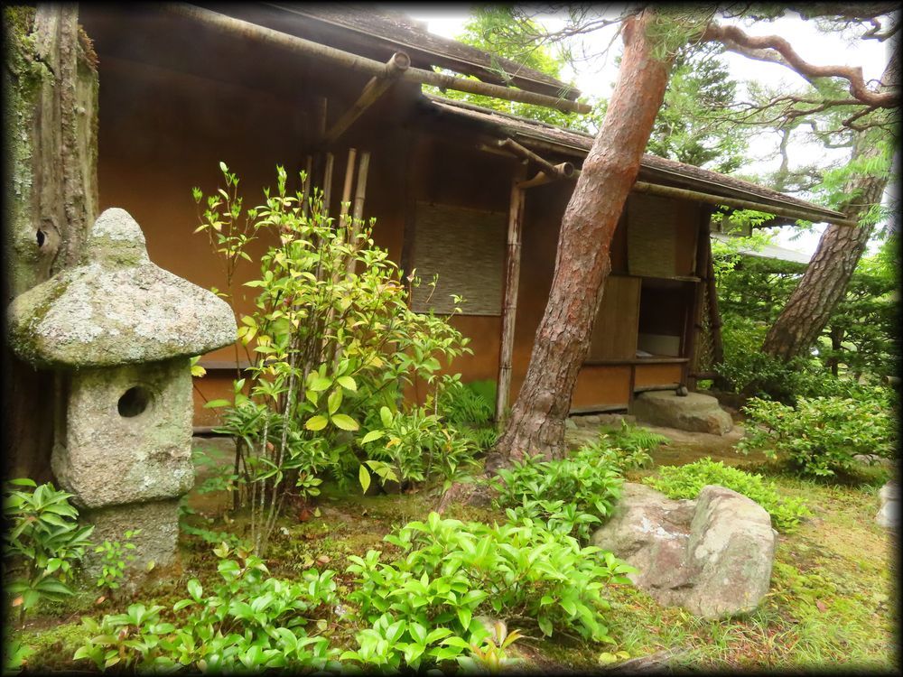 茶室「聚遠亭」周辺の露地。石燈籠の設置された場所、形状はこれ以外の選択肢がなかったと思えるほど絶妙な感覚です。