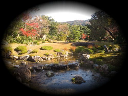 高瀬川はこの庭園から木屋町通に抜け、廣誠院の横を通り、三条四条の繁華街を流れていきます。