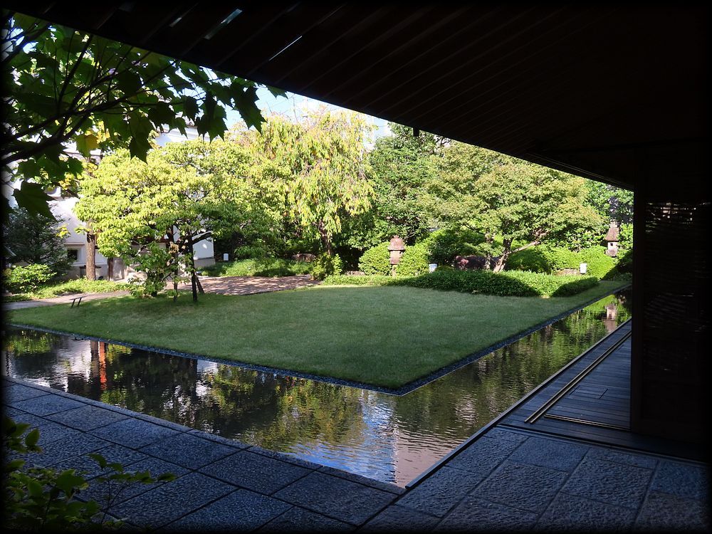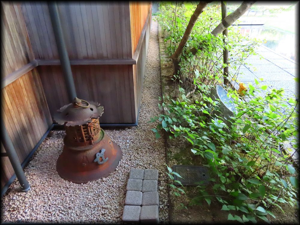 一条通に面した南側は大きな石燈籠と水盤に面しています。