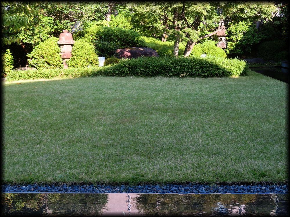 北側は広々とした芝生を水盤が覆う形に。水盤の水は本当に美しく、晴れた日は水鏡のように周辺の建物を美しく映しています。