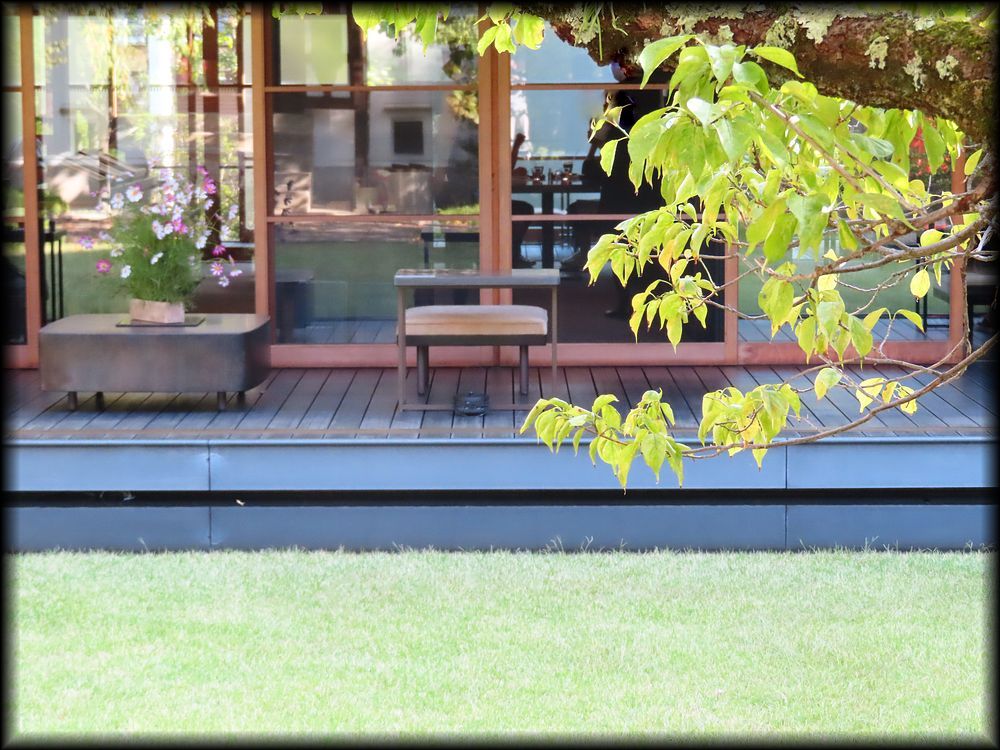 北側の庭に面したテラス。広々とした芝生を見ながら、ゆっくりと寛げます。