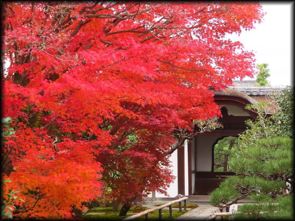 大徳寺興臨院 紅葉に初めて「酔った」経験をした寺院。わずか数本の紅葉が創り出す「紅」の世界は見事です。 |