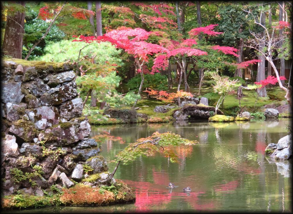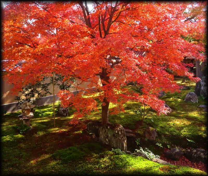苔寺(西芳寺) 緑一色の苔の世界に映える真っ赤な紅葉。ある面、日本の美の原風景ですね。11月と12月に拝観 |
