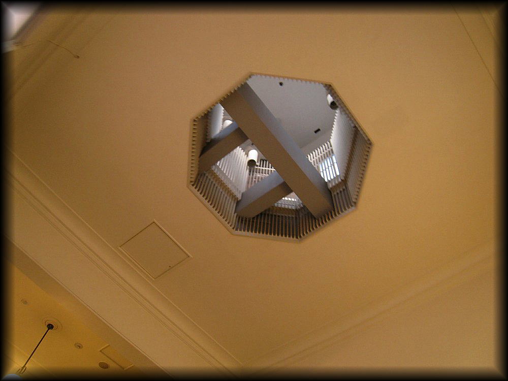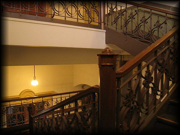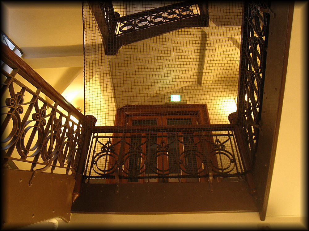 階段がなぜかとにかく美しい。ここまで惹かれた階段は個人的に珍しいです。 大理石の階段そのものも傑作ですが、なにげない手すりの造形がいちばん印象に残っています。Why? 1階の単なるホール入り口だと思うのですが、それでもこの豪華さ。。。。 塔屋に通じる八角形の吹き抜け。梁(?)の配置がこれまた絶妙・・・。