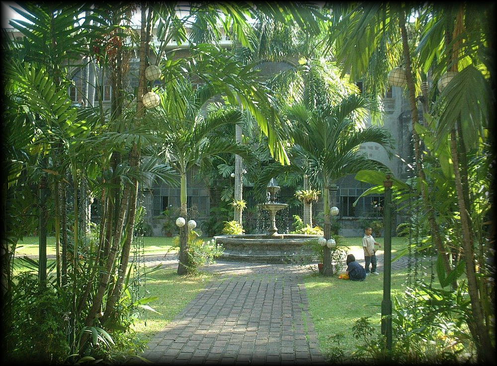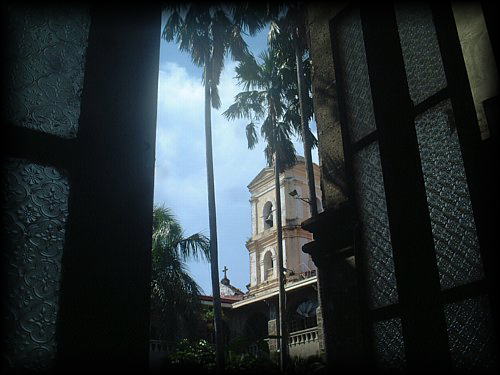 ![]() 数年前は上の写真のようにクリーム色だったのですが・・・。 ![]() ![]() 今回(2009年1月)訪れたときは薄いオレンジに。かなりイメージが変わりますね。 1587年の創立とは思えない斬新さですが、軽さは感じません。 右の建物は元修道院。観光客はこちらから入館します。 ![]() ![]() 元修道院の中庭から観る教会の尖塔(上)と修道院の外観(下)。 お色直しはいいのですが、中庭がいつのまにかコンクリートになっていたのはショック・・・。 ![]() 数年前のように芝生と木々で覆われていた時の方が断然よかったです。 ![]() 味がある廃墟の壁も今はなく、確か新しい建物が建っていたような・・・・。 ![]() 教会での結婚式。フィリピンの正装(バロンダガログ)が清楚な美しさ。 ![]() こちらは教会の正門。歴史を感じますね・・・・。 |