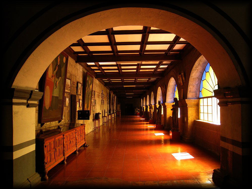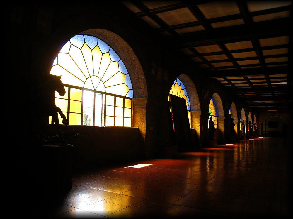 ![]() 2階はモノトーンの1階とは一転して、カラフルなステンドグラスに天井と床の装飾が目を惹きます。 でもなんといっても最大の魅力は「光の回廊」。 ![]() ![]() ![]() 4つの回廊のうち、この回廊だけはいつもステンドグラスが太陽の光を受けて、まさに天上にいるような別世界。 なぜかこの回廊には椅子がないのですが、ここに椅子を置いてくれれば、何時間居ても飽きない美しさを堪能できそう。 ![]() ![]() ステンドグラスは極めて簡素なデザインなのですが、よくここまで見事な光の演出ができるものだなぁと。人工と自然の融合=神の叡智? ![]() 光の回廊から小さな扉をくぐると、聖堂の2階に行くことができます。 ![]() ちょうど結婚式の途中・・・。このような教会で結婚式を挙げられる新郎新婦はそれだけで幸せですよね。 ![]() 何回足を運んでも新たな発見がある聖アグスティン教会。回廊ごとに飾ってある絵画や彫像などを観ていれば1日はかかるんじゃないかな (自分は絵画や彫像は興味ないけど、それだけでも十分に楽しめます)。 |