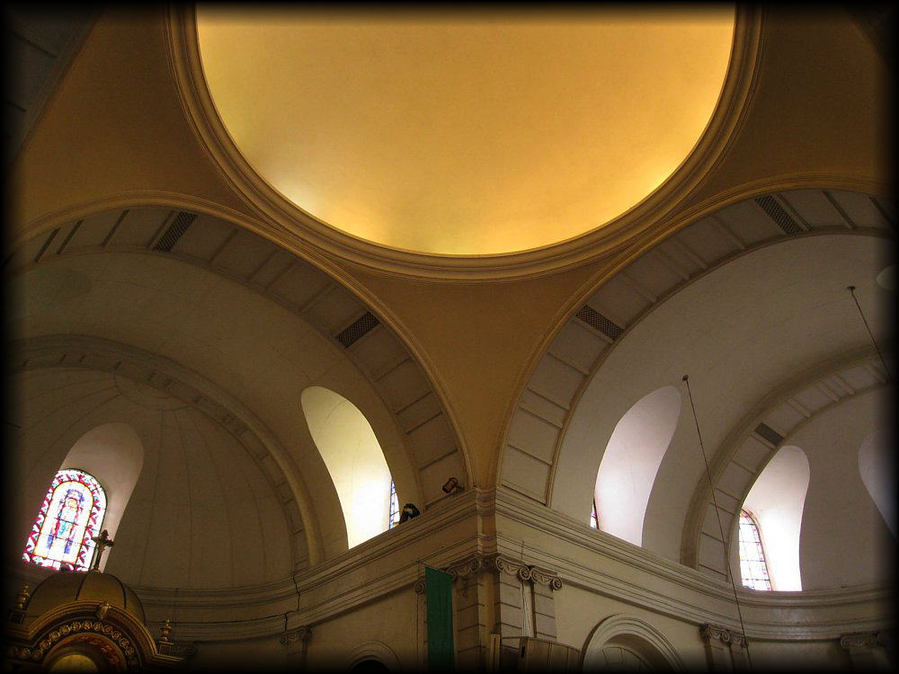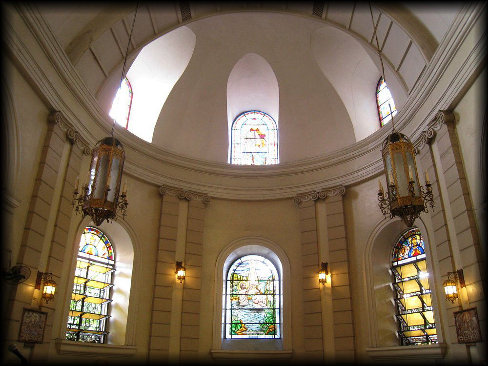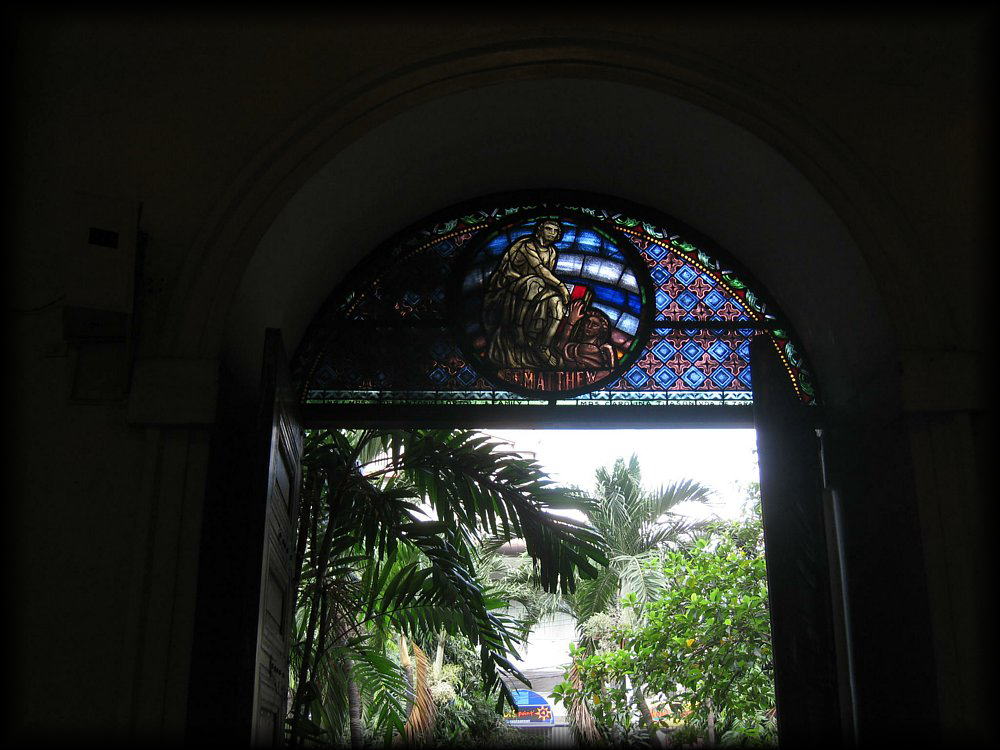![]() ![]() 教会の内部へは各方角に開け放たれた入り口から自由にはいることができます(上は海側、下は南側)。 ![]() 一歩中に足を踏み入れると、重厚な外観とは全くイメージが違う優しくて明るい空間。 ![]() ![]() ![]() ドームをはじめ、「円」を意識した造りがとても優しい雰囲気を醸し出しているような。 ![]() ![]() ![]() ステンドグラスもマラテ教会の大きな見所。聖アグスティン教会などに比べて芸術性は高くないのかもしれませんが、 自分的にはどの教会よりも意匠がフィリピンぽくて、お気に入り。海風も気持ちよく、何回も足を運びたくなる素敵な教会です。 |