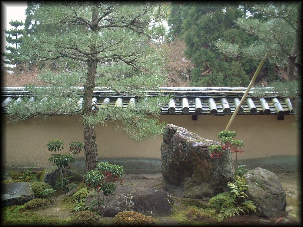 ![]() ![]() 開放的な南庭から東庭に入ると、一転して幽玄な雰囲気に ![]() ![]() 真珠庵「七五三の庭」方丈東庭は「十六羅漢の庭」と呼ばれ、真珠庵の「七五三の庭」と、どことなく相似性 ![]() ![]() ![]() 土塀と石組みと植栽が創り出すこの空間、「完結感」「緊張感」にあふれています。 ![]() 酬恩庵の方丈周囲の庭は松花堂昭乗、佐川田喜六、石川丈山の傑作とされていますが、 この東庭を素人目に観ると、真珠庵の「七五三の庭」と雰囲気が似すぎているため、 虎丘庵や一休宗廟と同じく、村田珠光の作庭のような錯覚 (ただ石組みなどで時代の違いがあるため、珠光ではないとのこと)。 ![]() そして東庭を通り、酬恩庵のもう一つの名庭、北庭へ |