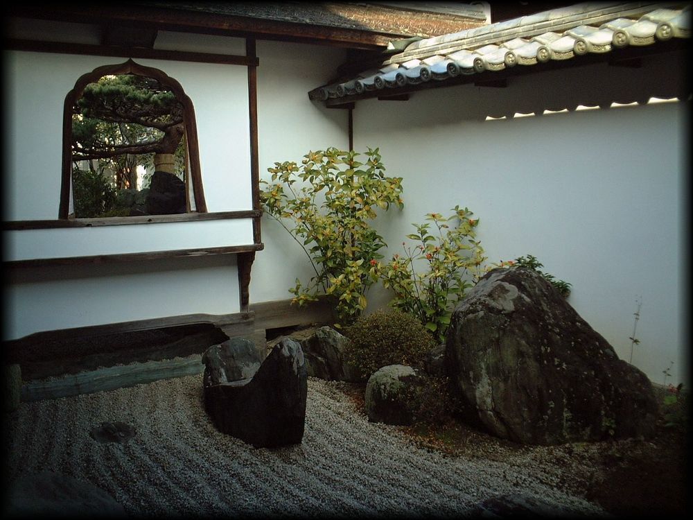 ![]() 花頭窓を通して観る蓬莱山。 額縁の中に収められた山水画を観ているような最高の構図で、本当にどれだけ観ていても飽きが来ません。 なんて優雅なんだろう。そして、なんて趣が深いんだろう。 ![]() 白い壁に植栽、瓦がつくる世界の陰影もまた美しく ![]() ![]() 内側から観る花頭窓。こちらも最高の構図。手前は鶴島で、ひときわ黒い石は「達磨石」 ![]() 大河に宝船を表した石がゆったりと浮かんでいる図(手前が舟石、奥が叡山石)。 ![]() ![]() 舟石は「いかにも舟」とわかりやすい見事な名石で、今にも水の上をこぎ出しそうな――。 ![]() ![]() 庭そのものは決して複雑な造りではなく、スペースも限られているのに、枯山水に必要なアイテムが全てそろい、 石の全てが極めて洗練された美的感覚で選び抜かれた名石ばかりという、ため息ものの名園 ![]() 2024年から、日本でいちばん美しい枯山水を再び撮影できるようになったことはうれしい限り。このように写真をあらためて観てると、 また実際の庭を鑑賞したくなってきます。近所に住んでいたら毎日でも通いそう笑 個人的なことですが、大仙院の隣の真珠庵に仮寓していた両親が羨ましい限り。 |