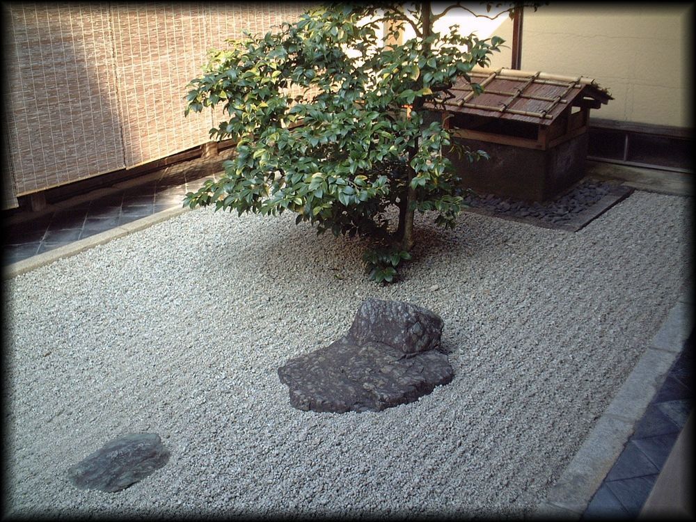 西庭は一面白砂のみ。前方に見えるのは方丈前庭(南庭)の沙羅双樹です。 ![]() 室町期の名園である書院庭園、 簡素な白砂で構成される方丈前庭(南庭)とはまた異なる中海の存在も大仙院の庭の魅力に大きく貢献しています。 |