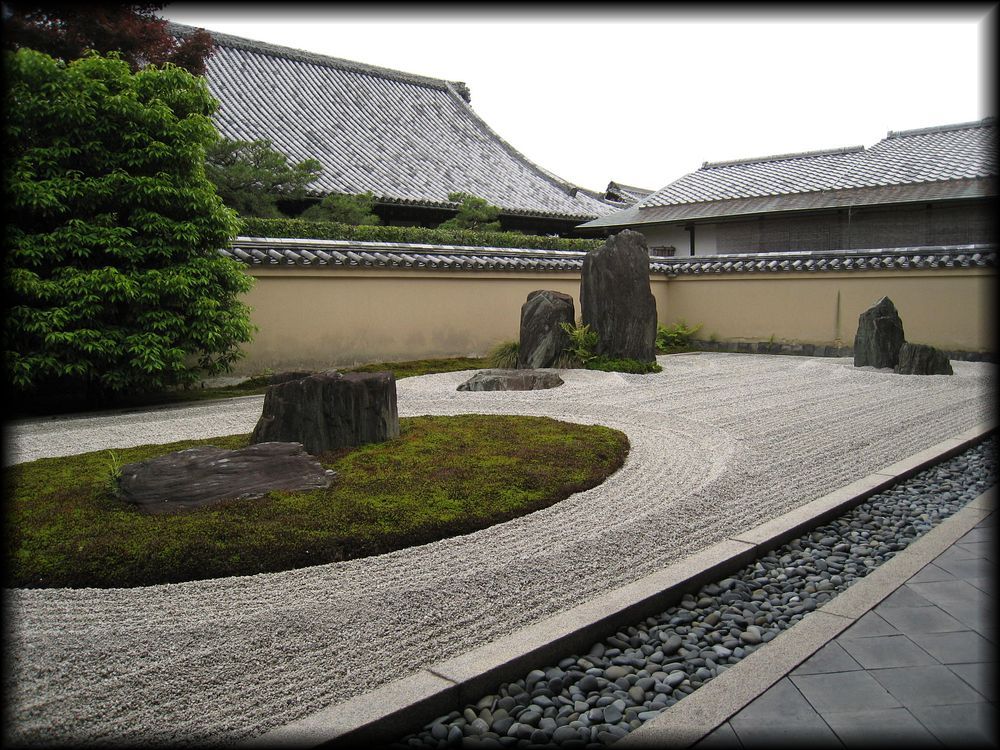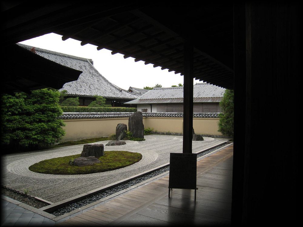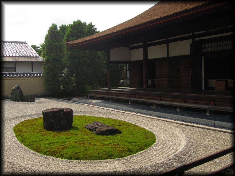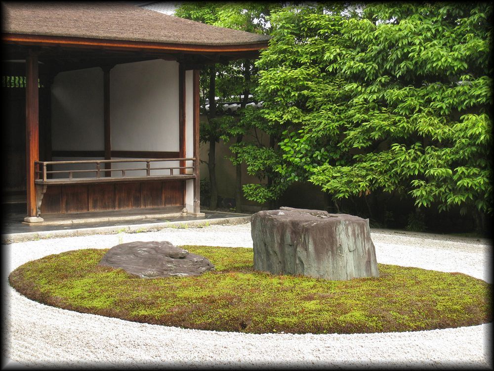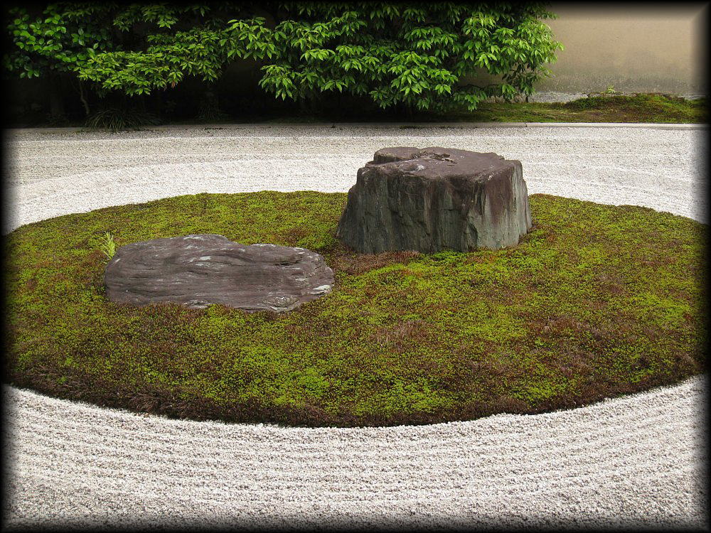比較的新しい庭だが、斬新ながら妙な新しさを感じさせないのはさすが。中央東側の楕円で囲まれた苔が白砂に映えて美しい。