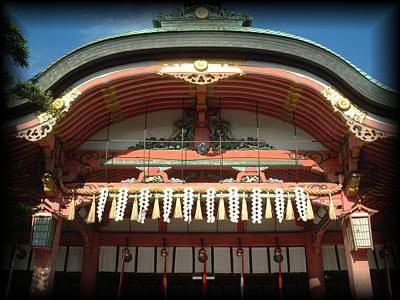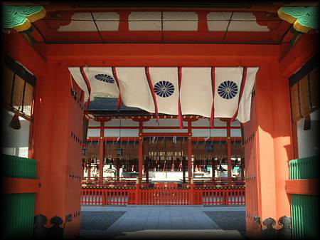 狛犬ではなく、稲荷の使者である狐が両側に。 ちなみに楼門前の大鳥居、わが祖父が設計したそうです。びっくり。