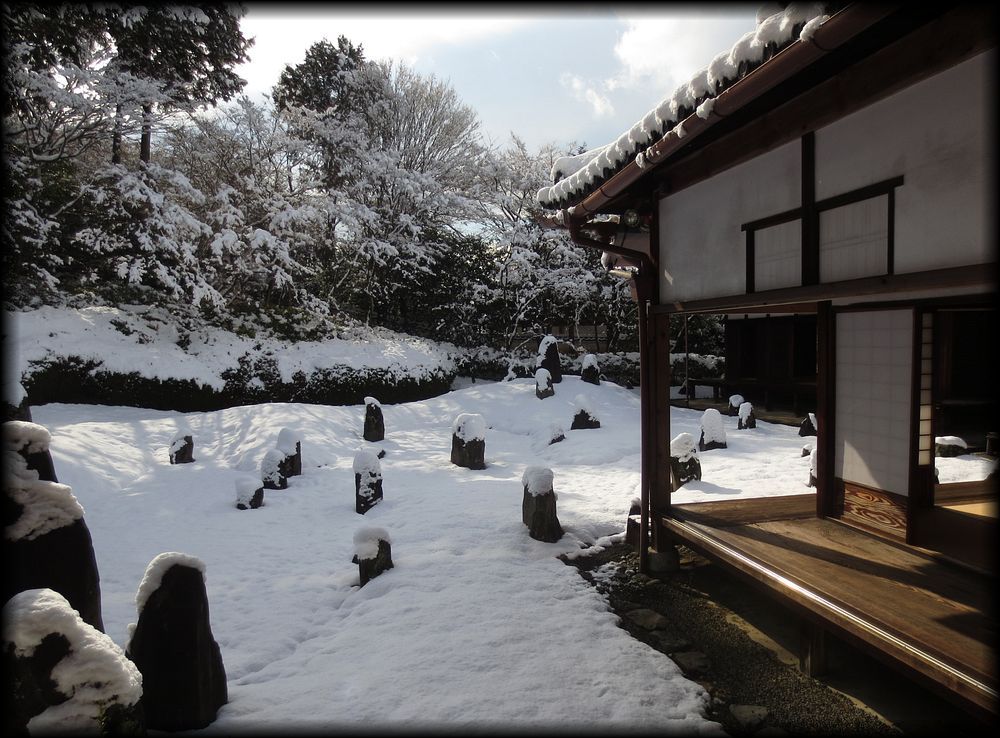 庭本来の美しさに彩りを加えるのが季節の変化。新緑の頃には緑一色の世界に白砂が映え、紅葉の季節には鮮やかな楓が苔庭に降りかかり、いかにも京都らしい和の美しさを魅せてくれます。京都ではめったに雪が積もらないですが、白一色に染まる真冬の幻想的な風景もお勧めです。