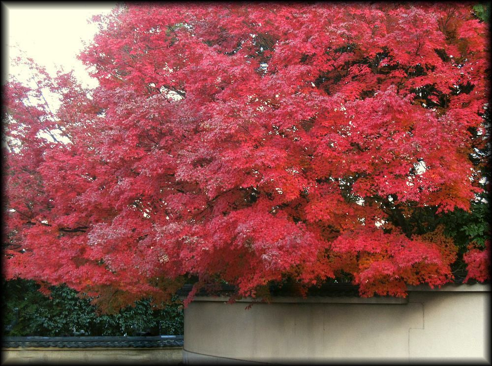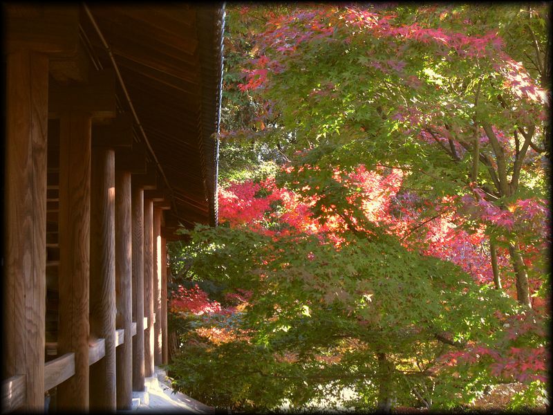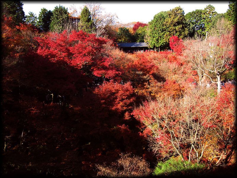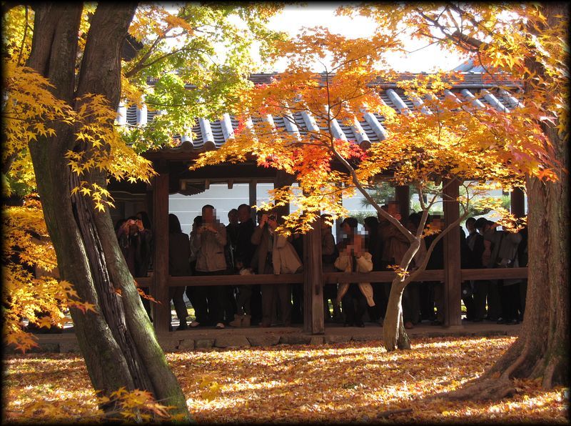 ![]() 紅葉の東福寺で最も有名な「通天橋」。洗玉澗と呼ばれる渓谷の上に架かります。 東福寺の境内を流れる洗玉澗には、下流から臥雲橋、通天橋、偃月橋の3脚が架けられています。 すごいと思うのは、ここ市街地のすぐ横にもかかわらず、橋の上から観る景色はあたかも深山にいるが如し (いかに市街地に近いかはMAPをご覧ください)。 近代になってからの景観維持にも脱帽しますが、この地形を選んで寺院を建立した先達の意図に感服します。 ![]() ![]() 通天橋からいちばん下流の臥雲橋を望む。家屋やビルが全く見えない景観です。 ![]() ![]() ![]() 一面、紅葉と黄葉で覆われる境内 ![]() ![]() 紅葉が前面に広がる経蔵 ![]() 「紅」がデフォルトになると、反対に緑が引き立つという不思議 ![]() さすが紅葉と言えば東福寺なのですが、とにかく人、人、人・・・・。日頃は観光客がそれほど多くない東福寺も、この季節は大混雑。 ![]() ![]() ![]() 通天橋の上も方丈も大混雑・・・。でも空に浮かんだ感覚で紅葉を観られる場所は貴重。訪れる価値はあります。 ![]() 通天橋への入場を待つ人々の行列・・・・。 自分は拝観開始後の小一時間後、行列が短くなった時を見計らって入場しました。 ![]() ただ紅葉以外の季節は、通天橋も含めて比較的空いています。 新緑の季節もおすすめ。ほとんど人が居ない時間もあり、ゆったりとした気分で拝観できます。 |