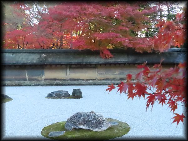 京都市右京区。市バス龍安寺前からすぐ。嵐電龍安寺道からは徒歩数分。 境内の鏡容池(広くて気持ちいい)や有名な「つくばい」も。石庭で余りにも有名。臨済宗妙心寺派。桜の季節も見事(龍安寺の桜)。