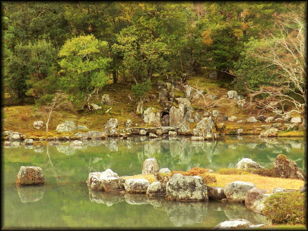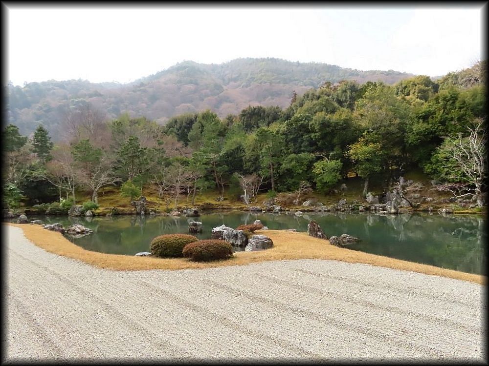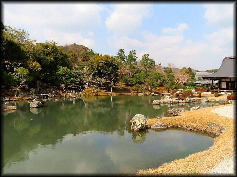 数多くの名園を抱える京都の中でも、その歴史的価値と壮大さで有名な天龍寺の「曹源池(そうげんち)庭園」。