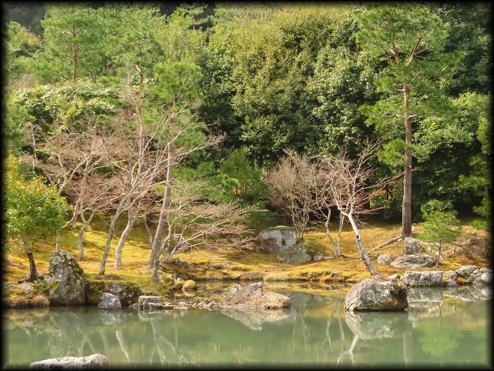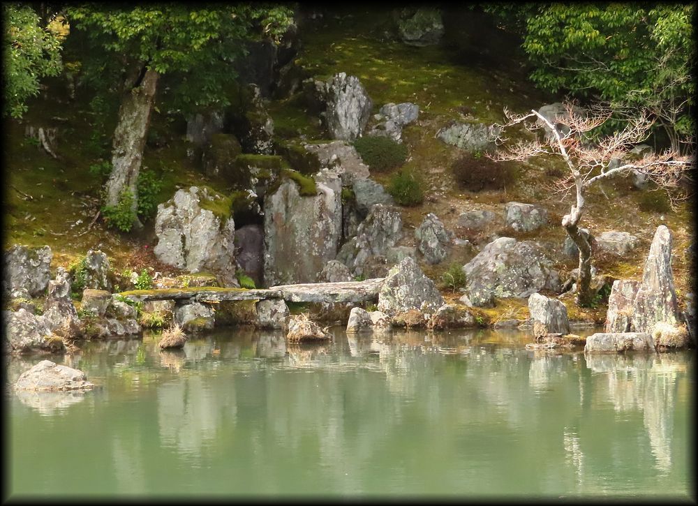 嵐山を借景にして拡がる夢窓疎石が作庭した庭園は、