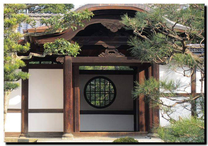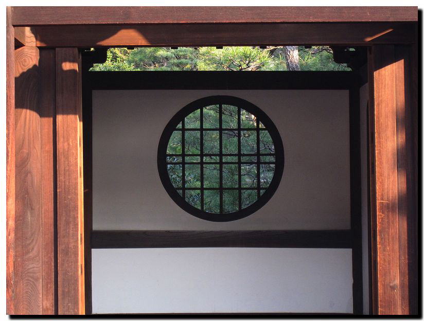 玄関の窓。禅刹の典型ですが、窓の形が「円」は意外に少ない?(通常は花頭窓と言われる形)