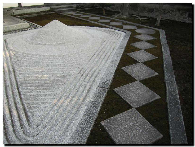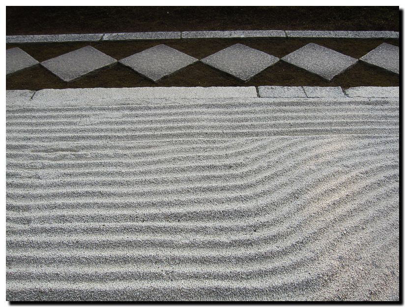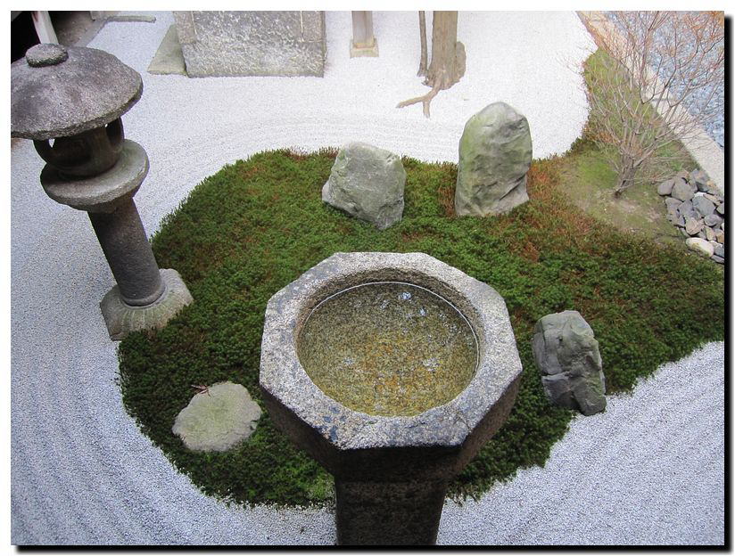 苔と白砂が織りなす幾何学的なこの模様、さて何を表しているのか。