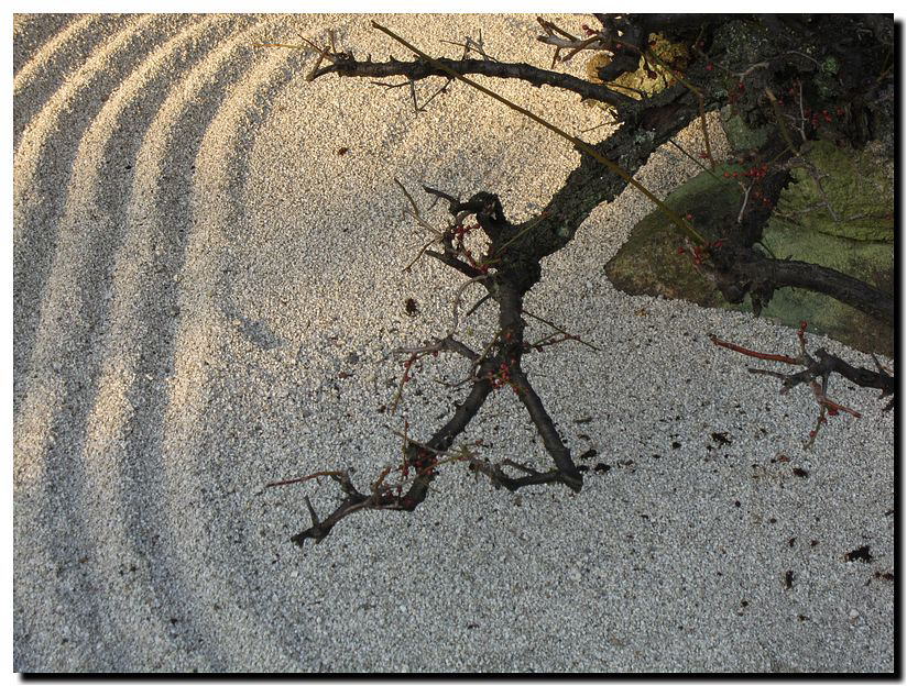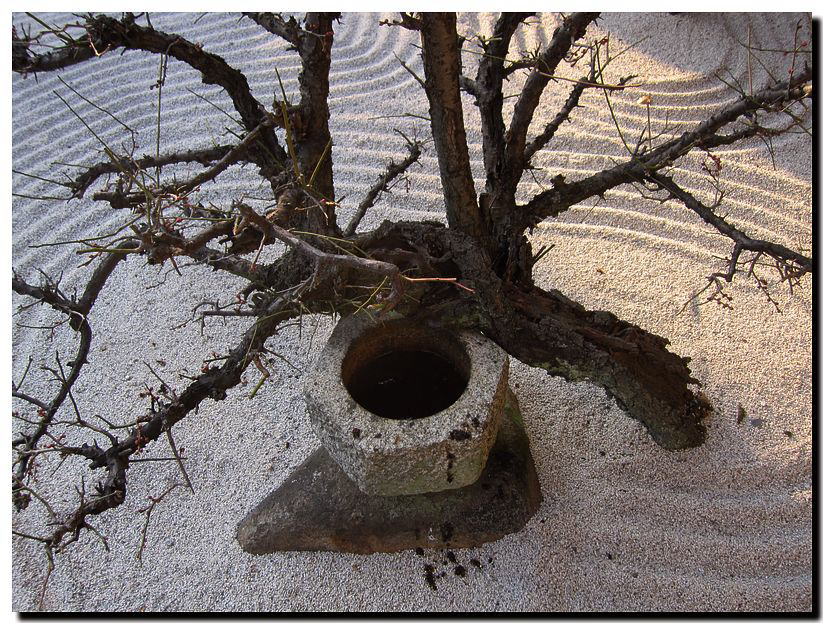 「凜」といえば、この梅。白砂の上に伸びる枝には早くも蕾が。